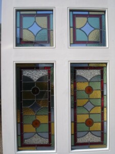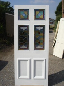 Made-To-Measure Reclaimed Internal 6 Panel Pine Door – Top 4 panels glazed and leaded with new and original stained glass (000642)